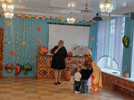 Конечно же, никакой праздник не проходит без гостей, и ею стала, царица Осень, которая заглянула в каждую группу.