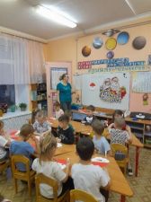 В подготовительной группе прошло занятие, посвящённое этому празднику. В ходе занятия воспитатель постаралась привлечь внимание детей к этому дню: познакомила с понятиями «старость», «пожилой человек». В ходе беседы ребята рассказывали о том, как они любят своих бабушек и дедушек, как они проводят вместе время, читают сказки, мастерят, помогают готовить. Дети сделали подарок для своих дедушек и бабушек — портреты - аппликации.